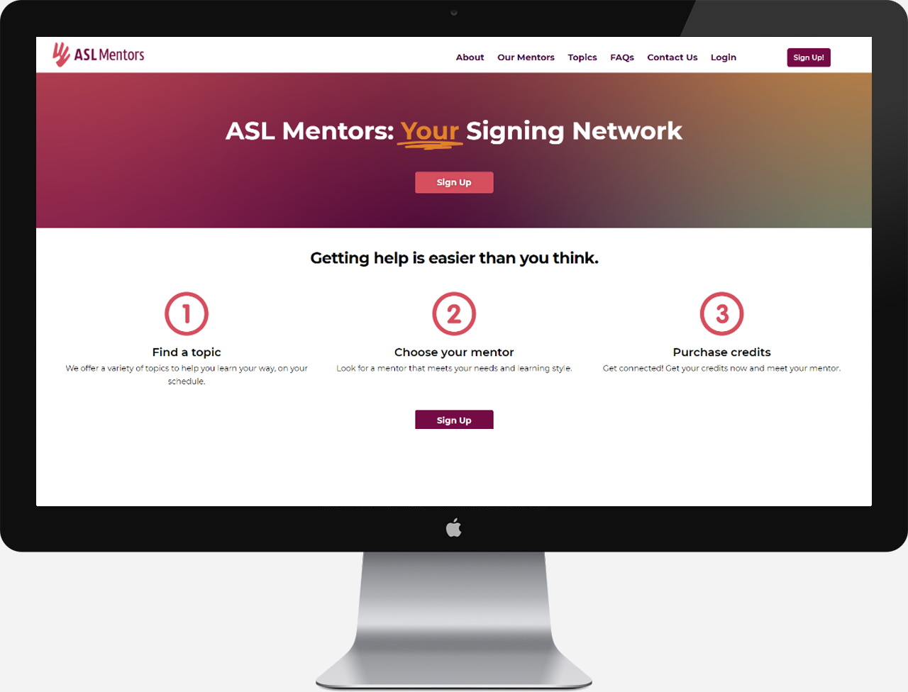 IN LESS THAN A YEAR, ASL MENTORS HAS ONBOARDED DOZENS OF MENTORS AND HUNDREDS OF MENTEES. THEY HAVE CORPORATE AND HIGHER EDUCATION CONTRACTS AND ARE GROWING RAPIDLY. WE SUPPORT THEIR TEAM WITH ADDITIONS TO THE WEBSITE & CONTINUED CONSULTING, AS WELL AS TECHNICAL SUPPORT AND EXPERTISE.